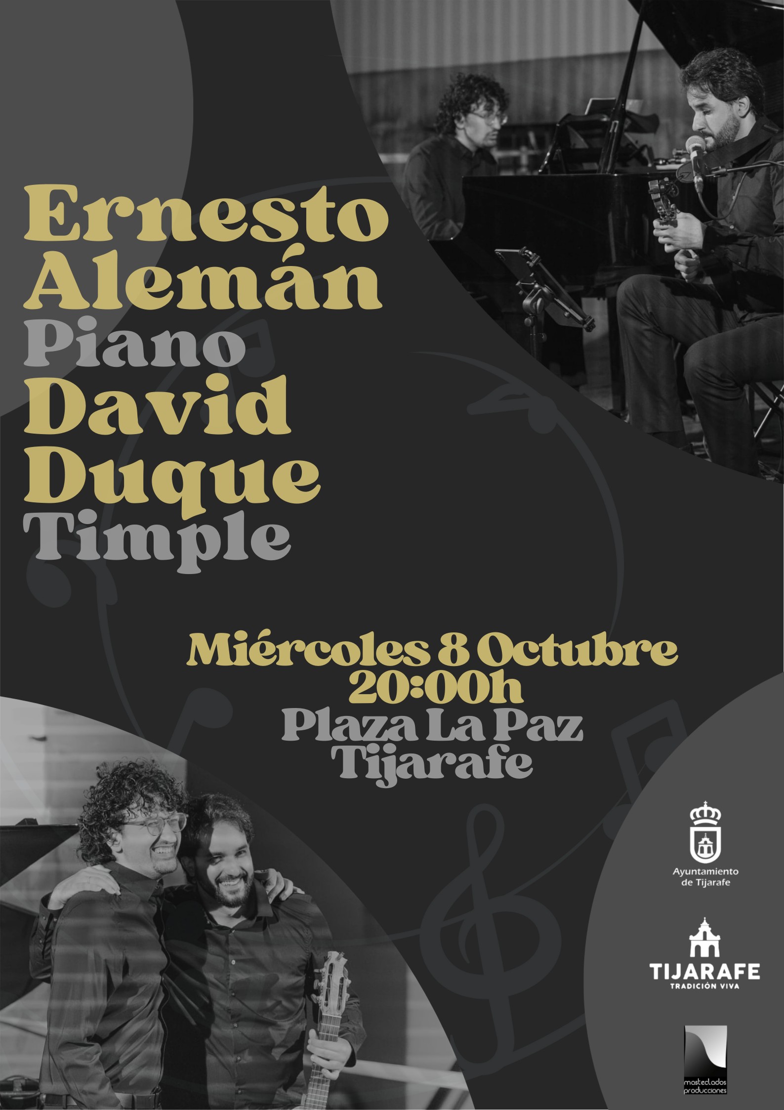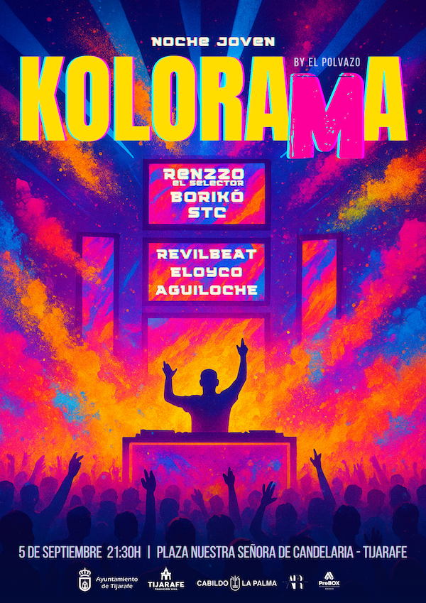Eventos culturales 29 Nov Tijarafe se mueve 2025 10:00 - 20:00 Plaza de Nuestra Señora de Candelaria, Tijarafe 08 Nov Raíces: VII Jornadas sobre el poblamiento indígena de Canarias 17:00 - 20:10 Casa de la Décima, Tijarafe 05 Nov Presentación del libro «Han cantado bingo» de Lana Corujo 19:30 - 20:30 Biblioteca Municipal de El Pueblo, Tijarafe Cursos Eventos concluidos 31 Oct Espectáculo musical «Almas en penumbra» 20:00 - 22:00 Casa del Maestro, Tijarafe 30 Oct Víspera de la víspera de Todos Los Santos 19:00 - 20:00 Biblioteca Municipal de Tijarafe, Tijarafe 18 Oct Azúcar, caña, fuego y sal 18:00 - 20:00 Plaza de La Punta, Tijarafe 08 Oct Ernesto Alemán y David Duque en concierto 20:00 - 08/09/2025 22:00 Plaza de La Paz, Tijarafe 19 Sep Timpleando por La Palma 18:00 - 20/09/2025 23:00 Plaza de La Paz, Tijarafe 06 Sep Festival del Mariachi con el Mencey Azteca 21:30 - 23:00 Plaza de Ntra. Sra. de Candelaria, Tijarafe 05 Sep Noche joven “KOLORAMA” 21:30 - 23:59 Plaza de Ntra. Sra. de Candelaria, Tijarafe 03 Sep Concierto de la Banda Municipal de Tijarafe 21:00 - 22:00 Plaza de Ntra. Sra. de Candelaria, Tijarafe 01 Sep Día del mayor: Actuación Zebenzui Melián 19:00 - 23:00 Plaza de Ntra. Sra. de Candelaria, Tijarafe 29 Ago Festival Folclórico Regional de Tijarafe 21:00 - 22:30 Plaza de Ntra. Sra. de Candelaria, Tijarafe 28 Ago Atlantic Sounds con Olga Cerpa y Mestisay 21:00 - 22:30 Plaza de Ntra. Sra. de Candelaria, Tijarafe 27 Ago Azúcar, Caña, Fuego y Sal 21:00 - 22:30 Plaza de Ntra. Sra. de Candelaria, Tijarafe 26 Ago Cine de verano “Del Revés 2 (Inside Out 2)” 21:30 - 23:00 Plaza de Ntra. Sra. de Candelaria, Tijarafe 26 Ago Presentación del libro «De Canarias y La Palma a Cuba, de Tijarafe a Cabaiguán: La décima improvisada que hermana pueblos» de Mario Luis López y Ester Lidia Vázquez. 19:00 - 20:00 Casa de la Décima, Tijarafe 25 Ago Cine de verano “El gato con botas: el último deseo” 21:30 - 23:00 Plaza de Ntra. Sra. de Candelaria, Tijarafe 25 Ago Inauguración de la exposición “Transformación” de Marianne Vanrutten 19:00 - 12/09/2025 14:00 Atrio del Ayuntamiento de Tijarafe, Tijarafe 24 Ago 52º Festival Internacional de Punto Cubano 20:30 - 23:00 Plaza de Ntra. Sra. de Candelaria, Tijarafe 24 Ago Cata con-versada 19:00 - 20:30 Plaza de Ntra. Sra. de Candelaria, Tijarafe 23 Ago Exhibición de coches clásicos 11:00 - 13:00 Calles aledañas de la Plaza de Ntra. Sra. de Candelaria, Tijarafe 22 Ago III GUAJIRA Y PUNTO! – 3º Muestra de la Cultura Cubana 19:00 - 02:00 Plaza de Ntra. Sra. de Candelaria, Tijarafe 21 Ago José Manuel Ramos: «Canciones en el Bar de los Mal Amados» 21:30 - 23:00 Plaza de Ntra. Sra. de Candelaria, Tijarafe 21 Ago Gala Inaugural de las Fiestas: Homenaje a José Luis Lorenzo Barreto y a la Fiesta de Arte en Tijarafe 21:30 - 23:00 Plaza de Ntra. Sra. de Candelaria, Tijarafe 28 Jul Presentación del poemario «Yo he querido morir tantas veces…» de Natalio Cruz Duque 19:30 - 21:00 Plaza de La Paz, Tijarafe 04 Jul Teatro en la biblio: «90 segundos para la medianoche» 19:00 - 20:00 Biblioteca Municipal de El Pueblo, Tijarafe 03 Jul Cine de barrio 2025 21:15 - 23:15 Tijarafe, Tijarafe 24 Jun Fin de curso de la Escuela Municipal de Piano de Tijarafe 19:00 - 20:00 Casa de La Décima, Tijarafe 20 Jun Fin de curso de la Escuela Municipal de Folclore de Tijarafe: Baile 19:00 - 20:00 Plaza de La Paz, Tijarafe 19 Jun Rincones sonoros – AQBA Music 21:00 - 22:00 Plaza de La Paz, Tijarafe 18 Jun Fin de curso del Aula Municipal de Teatro de Tijarafe: Romeo y Julieta 19:00 - 20:00 Biblioteca Municipal de Tijarafe, Tijarafe 17 Jun Fin de curso del Aula Municipal de Música de Tijarafe: Mi primera audición 19:30 - 20:30 Casa de La Décima, Tijarafe 12 Jun Fin de curso de la Coral Municipal de Tijarafe: Recital de Zarzuela 19:00 - 20:00 Casa de La Décima, Tijarafe 30 May II Canarias Sal y Viento: Día de Canarias 20:00 - 22:00 Plaza de Aguatavar, Tijarafe 28 May Ruta guiada por el casco histórico de Tijarafe – Conoce nuestra (tu) historia 19:00 - 20:30 Biblioteca Municipal de El Pueblo, Tijarafe 25 May Cóctel de inauguración Festival Tiempo Sur 17:00 - 20:00 Veganorte, Tijarafe 23 May II Canarias Sal y Viento: Hirahi Afonso 21:00 - 23:00 Plaza de La Paz, Tijarafe 22 May Ópera rock en la biblio 20:00 - 21:30 Biblioteca Municipal de El Pueblo, Tijarafe 09 May II Canarias Sal y Viento: Eslabones 20:00 - 22:00 Casa de la Décima, Tijarafe 25 Abr PalabrOTAS: NarrAcciones con música en vivo 19:00 - 20:00 Biblioteca Pública Municipal de Tijarafe, Tijarafe 12 Abr Expovida 2025: Celebra la vida 12:00 - 21:00 La Travesía, Tijarafe 29 Mar Carnaval Tijarafe 2025 17:30 - 22:00 Plaza de Nuestra Señora de Candelaria, Tijarafe 02 Ene Concierto Tajadre: Tijarafe nos regala una noche por Navidad 21:00 - 22:00 Plaza de Nuestra Señora de Candelaria, Tijarafe 30 Dic Espectáculo de magia “El creador de los sueños: Conexión” 19:00 - 20:30 Plaza de Nuestra Señora de Candelaria, Tijarafe 29 Dic Espectáculo musical La Fiesta del Mariachi 19:00 - 20:30 Plaza de Nuestra Señora de Candelaria, Tijarafe 26 Dic Concierto especial de Navidad 20:00 - 21:00 Iglesia de Nuestra Señora de Candelaria, Tijarafe 23 Dic Espectáculo infantil ¡De fábula! 19:00 - 20:00 Casa de la Cultura José Luis Lorenzo Barreto, Tijarafe 30 Nov Tijarafe se mueve 2024 11:00 - 20:00 Plaza de Nuestra Señora de Candelaria, Tijarafe 24 Nov Eslabones 18:30 - 20:00 Casa de la Décima, Tijarafe 22 Nov Punto y seguido 19:30 - 21/11/2024 21:00 Casa de la Cultura José Luis Lorenzo Barreto, Tijarafe 21 Nov Concierto en la biblio 20:00 - 21:30 Biblioteca Municipal de Tijarafe, Tijarafe 20 Nov La noche en vela 20:00 - 20:00 Casa de la Cultura José Luis Lorenzo Barreto, Tijarafe 19 Nov Pintando canciones 20:00 - 22:00 Atrio del Ayuntamiento de Tijarafe, Tijarafe 12 Nov Mararía, la de Femés 20:00 - 22:00 Casa de la Cultura José Luis Lorenzo Barreto, Tijarafe 09 No